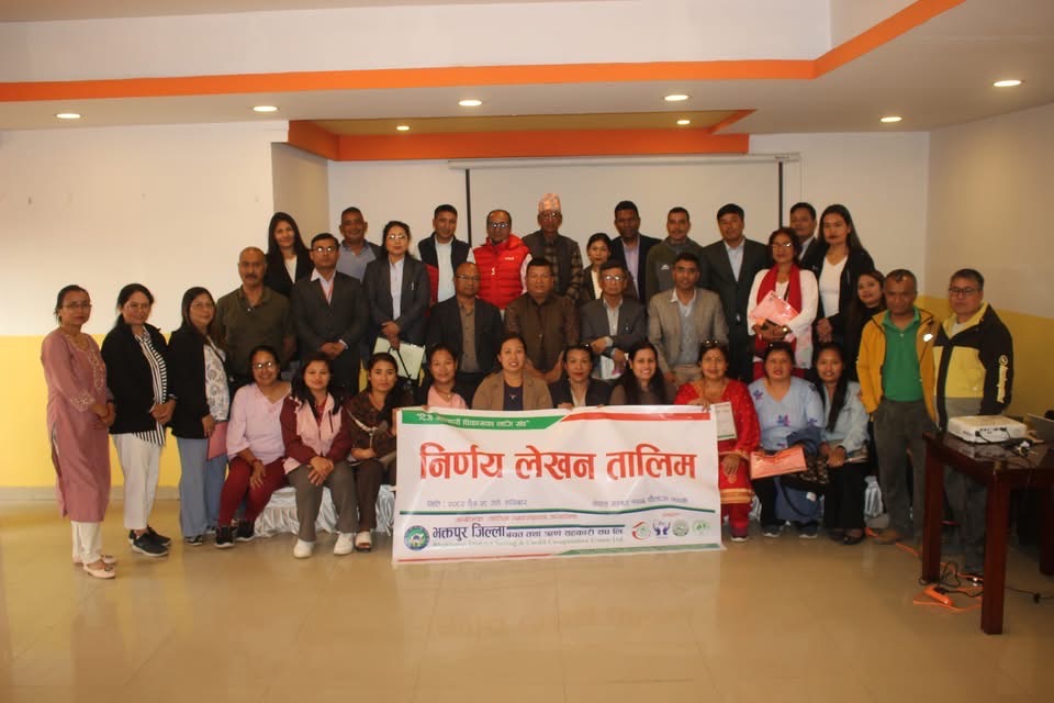सहकारी संस्थाहरूको अनुगमनका क्रममा निर्णय प्रक्रिया अपुरो र अस्पष्ट देखिने गरेको भन्दै भक्तपुर जिल्ला बचत तथा ऋण सहकारी संघ लि. ले आफ्ना सदस्य संस्थाहरूका लागि ’निर्णय लेखन तालिम’ सम्पन्न गरेको छ। सहकारी ऐन, नियम र सिद्धान्त अनुरूप संस्थाका बैठकका निर्णयहरूलाई कानुनी र व्यावहारिक रूपमा सवल बनाउने उद्देश्यले सो तालिम आयोजना गरिएको हो।
