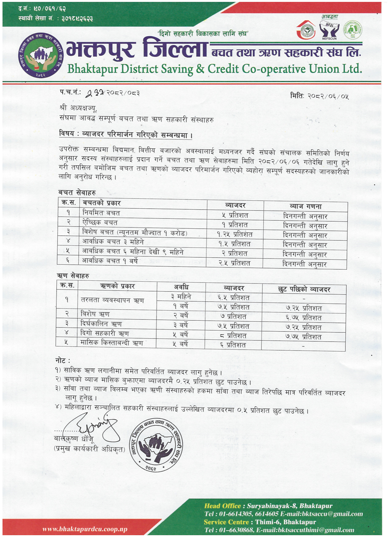 व्याज दर परिमार्जन गरिएको सम्बन्धमा